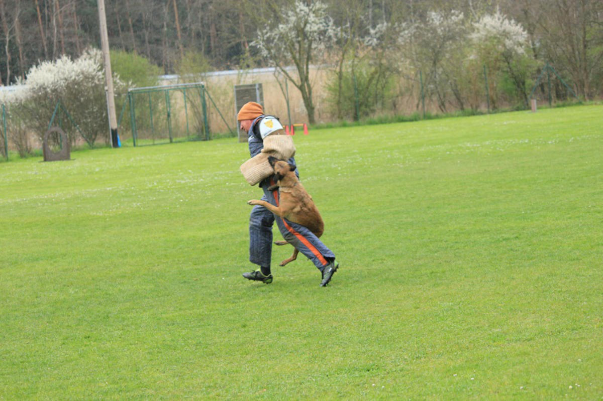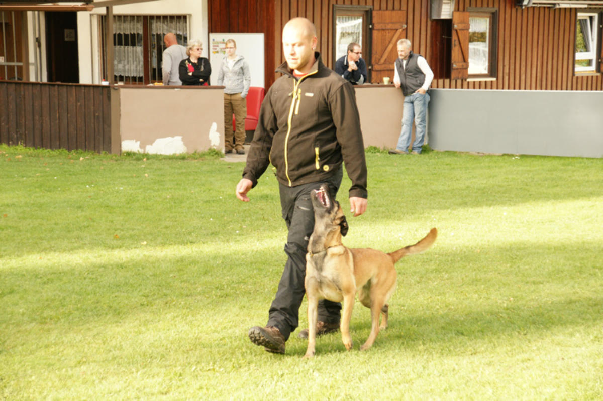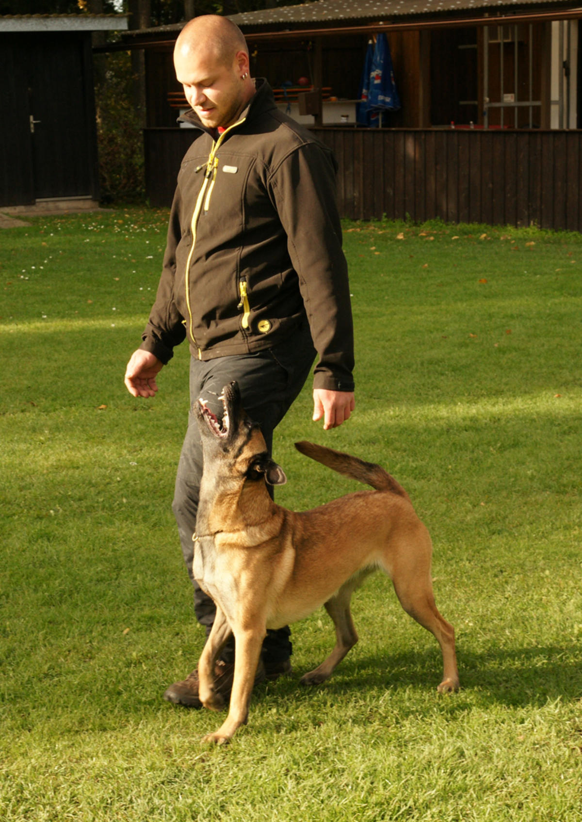 Im Schutzdienst zeigt Ace eine sehr gute Arbeit , durch ihre vollen festen